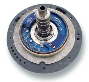 因為變速器內部安裝空間狹小、工作環境惡劣,所以必須對發射機進行改裝。德泰公司設計出扁平的環型8通道熱電偶測量模塊,將其與感應供電次級線圈(即發射天線)組裝后,安裝在離合器盤轂的背面。感應供電初級線圈(即接收天線)被安裝在泵盤上,以完成系統供電和信號接收工作。封裝后的遙測系統可以抵御125℃自動變速器油的長期侵蝕,在連續數月的工作中,準確可靠地測量摩擦盤溫度。此外,系統還可測量用戶關心的其他信號,如應力、扭矩和油壓等。